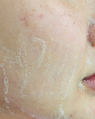 2. 거품을 얼굴 전체에 부드럽게 마사지하듯 롤링하여 노폐물과 메이크업 잔여물을 깨끗하게 제거해 주세요.